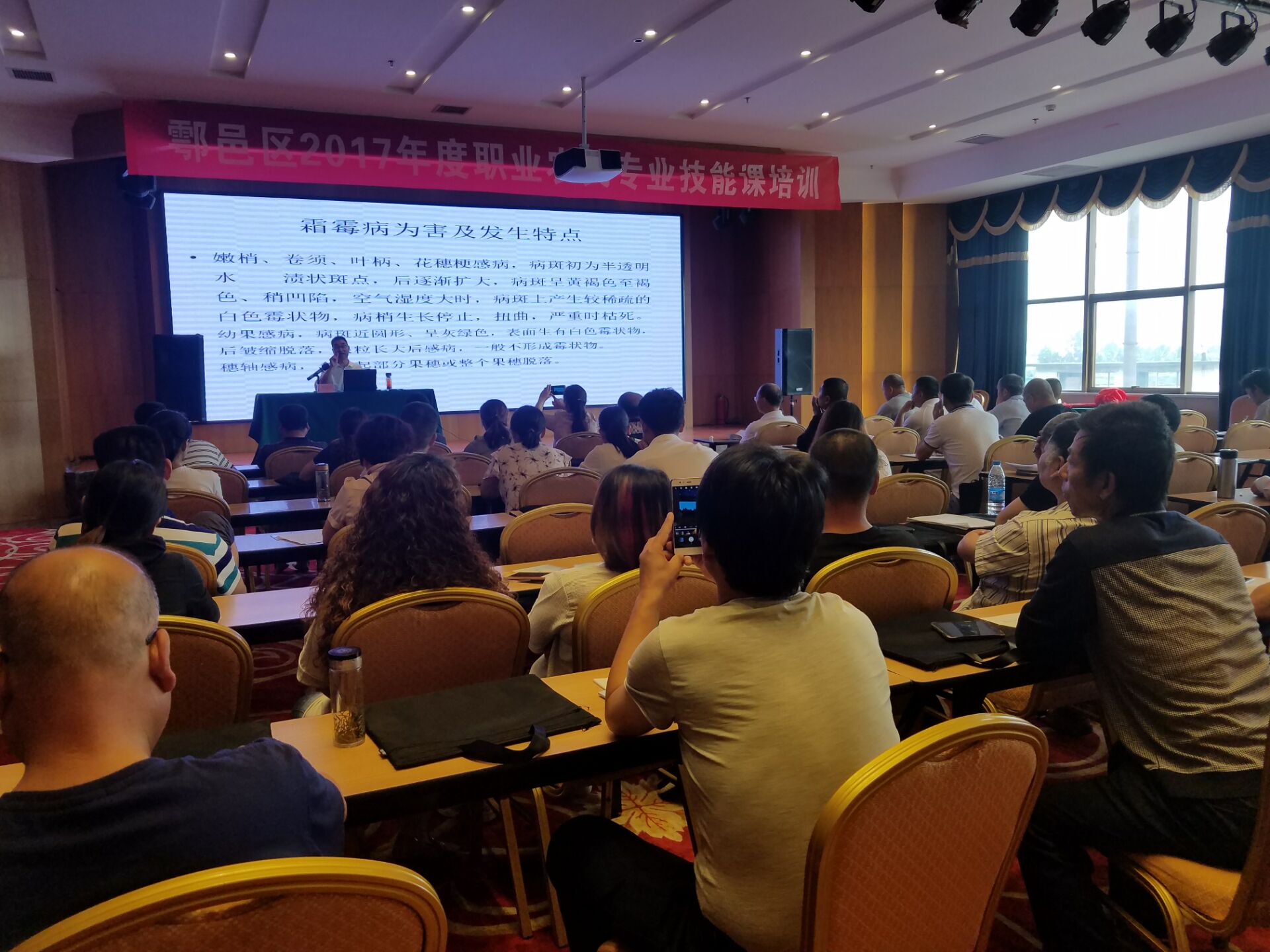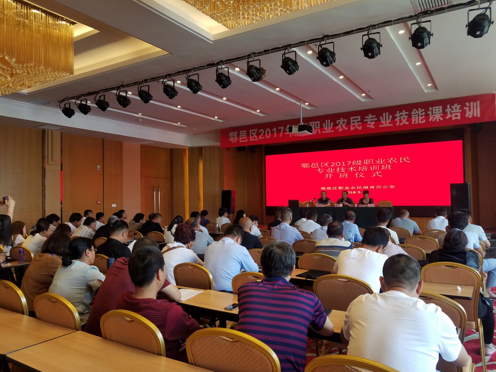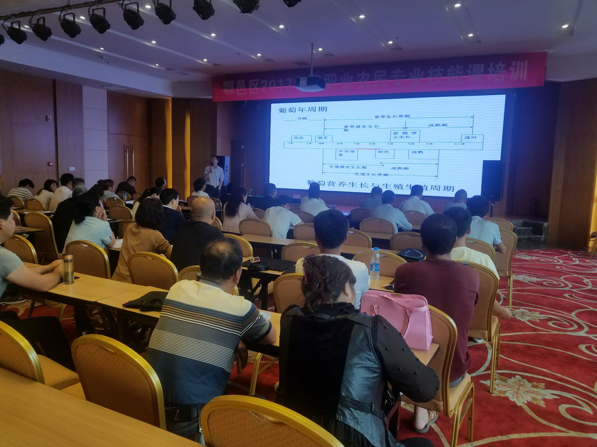 受鄠邑区农业技术推广中心委托,新天地示范园于5月16--18日在杨凌万丽莱酒店对鄠邑区70余名职业农民进行了为期三天的专业技术培训活动,本次活动取得圆满成功。